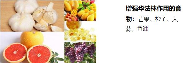 降低華法林作用食物:菠菜、茶葉、卷心菜、蘆筍、西芹、西蘭花、韭菜、大白菜、胡蘿卜、西紅柿、土豆、動物肝臟等,富含維生素K的食物,以上食物維生素K含量高,如食用過量增加維生素K的攝入,降低華法林的抗凝作用,降低INR。