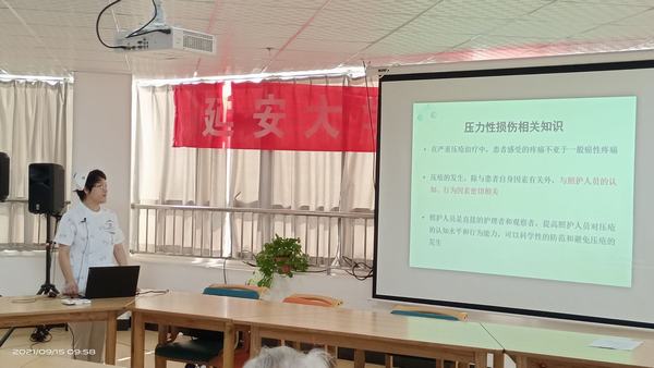 眾所周知,壓力性損傷多發(fā)生于長期臥床、慢性病、活動障礙的老年患者身上,尤其是70歲以上的老年人。它不僅增加了老年人的痛苦,同時(shí)也加重了家庭經(jīng)濟(jì)負(fù)擔(dān),嚴(yán)重感染者甚至?xí)?dǎo)致患者死亡。針對這一問題,皮膚傷口專業(yè)組鄭梅護(hù)士長用通俗易懂的語言為老人們講解了壓瘡的形成、分級與治療護(hù)理,重點(diǎn)指導(dǎo)老人如何正確預(yù)防壓力性損傷的發(fā)生,提高老年人日常生活質(zhì)量。