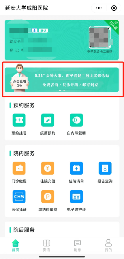 微信搜索延安大學(xué)咸陽醫(yī)院互聯(lián)醫(yī)院,點(diǎn)擊即可進(jìn)入