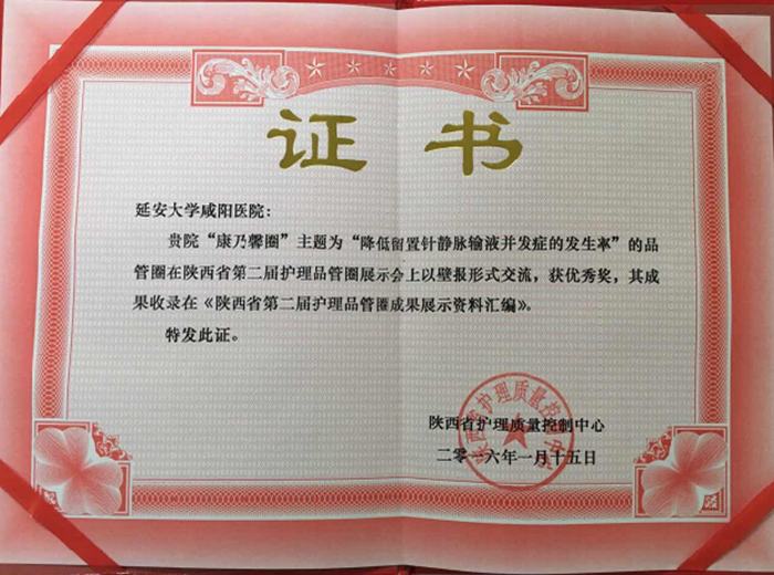 2016年1月14日至15日,由陜西省質(zhì)控中心舉辦的陜西省第二屆護(hù)理品管圈成果展示會(huì)在西安軍區(qū)招待所隆重召開。此次成果展示會(huì)選自全省的124個(gè)圈。大會(huì)有38個(gè)品管圈進(jìn)行展示,其中有18個(gè)品管圈進(jìn)行PPT匯報(bào),20個(gè)品管圈進(jìn)行壁報(bào)展示。我院重癥醫(yī)學(xué)科三病區(qū)康乃馨圈,主題為:降低留置針靜脈輸液并發(fā)癥的發(fā)生率,參加壁報(bào)交流并獲優(yōu)秀獎(jiǎng),成果被錄入《陜西省第二屆護(hù)理品管圈成果展示資料匯編》為我院爭(zhēng)得榮譽(yù)。同時(shí),在陜西省第二屆護(hù)理品管圈成果展示會(huì)上,我院仍是咸陽市唯一進(jìn)入成果展示的醫(yī)院,為咸陽市護(hù)理界再次爭(zhēng)得榮譽(yù)。