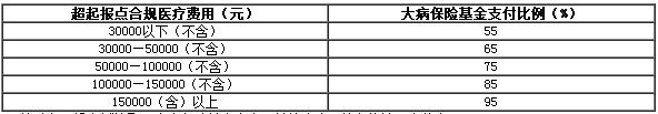 第七條 超大病保險起報點的合規(guī)醫(yī)療費用,城鎮(zhèn)職工大病保險基金按下表規(guī)定支付(分段計算),城鎮(zhèn)職工大病保險基金年度累計報銷封頂線為40萬元。