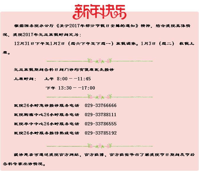 延安大學(xué)咸陽醫(yī)院2017年元旦放假通知