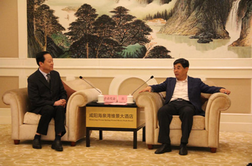 咸陽市委書記岳亮(右)與精誠(chéng)醫(yī)療集團(tuán)主席張群會(huì)談