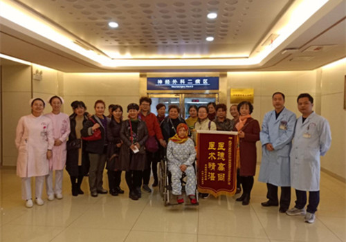 一個月前,薛女士突發(fā)左側基底節(jié)區(qū)腦出血,量約43毫升,患者呈淺昏迷狀,混合型失語,查體欠合作,智能不合作,劉主任及主管醫(yī)生王海波即行全麻下腦內(nèi)血腫清除術、顱骨切除減壓術。經(jīng)過短短一個月的康復治療和精心護理,患者從入院時的意識障礙、絕對臥床到現(xiàn)在的神志清楚,簡單問答,緩慢行走。醫(yī)生護士付出的心血換來患者重新走上了健康之路。這就是最完滿的結果。