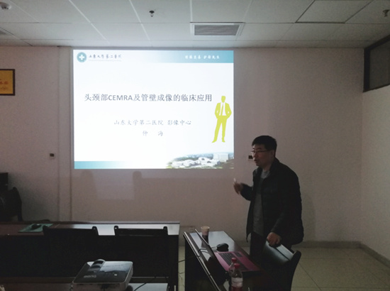 上下求索,耕耘不輟,2020年1月11日下午山東大學第二醫(yī)院影像中心主任仲海教授及山東省醫(yī)學影像學研究所邵賽博士蒞臨延安大學咸陽醫(yī)院CT/MRI室進行授課講解、指導參觀,由院長助理兼醫(yī)學影像科CT室主任劉連鋒同志接待參觀我科工作場所及操作設備,重點關注了解我科新裝飛利浦設備運作情況,提出可發(fā)展項目及其方向。隨后,仲海教授于CT室腦科樓示教室就《頭頸部CEMRA及血管壁成像的臨床應用》進行授課分析,細致入微,引人入勝;邵賽博士親自上機操作指導進行掃描示范。院長助理劉連鋒同志,張媛、張濤責任總醫(yī)師及CT室診斷醫(yī)師和部分技師共20余人參加了本次授課學習。