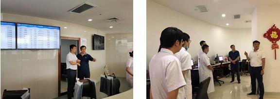 會前,在劉連鋒院長助理兼醫(yī)學(xué)影像科主任的陪同下,張明教授參觀了腦血管病院CT室工作區(qū)域,與一線員工親切交談并給予期許和寄語。