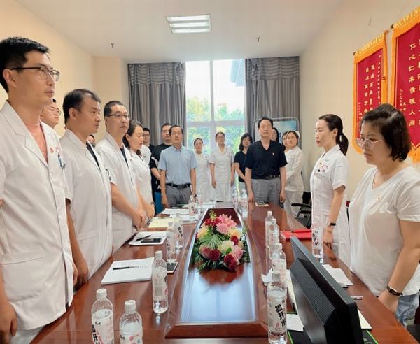 會(huì)議伊始,張海濤院長(zhǎng)圍繞黨史教育進(jìn)行了精彩講話,從我黨的發(fā)展史到目前的國(guó)際形勢(shì),再到黨在疫情防控過(guò)程中起到至關(guān)重要的作用,肯定了黨的正確立場(chǎng)和決策,強(qiáng)調(diào)了黨員同志在群眾中應(yīng)起到模范帶頭作用,堅(jiān)決擁護(hù)和貫徹落實(shí)黨的方針和政策。作為醫(yī)務(wù)工作者,做好本職工作,服務(wù)好每一位患者是每位黨員同志的最基本要求。此外,張海濤院長(zhǎng)結(jié)合醫(yī)院實(shí)際,號(hào)召?gòu)V大黨員同志緊緊圍繞醫(yī)院中心工作,做好如皋、眉山、北車分院的對(duì)口支援,要求在日常工作中,應(yīng)善于發(fā)現(xiàn)并解決工作中遇到的問(wèn)題,加強(qiáng)各科室的溝通,團(tuán)結(jié)協(xié)作,減少不必要的輸出和浪費(fèi),合理配置人力與資源,最大化提高工作效率。隨后,劉連鋒院長(zhǎng)助理進(jìn)一步強(qiáng)調(diào)我黨經(jīng)歷百年風(fēng)風(fēng)雨雨,烈焰淬煉,一路披荊斬棘,矢志不渝,取得一次次歷史性勝利,應(yīng)珍惜當(dāng)下來(lái)之不易的幸福生活。工作中,黨員同志應(yīng)注意聯(lián)系實(shí)踐,勇于表現(xiàn),不斷突破自我,自信地將光和熱發(fā)揮到工作崗位上。