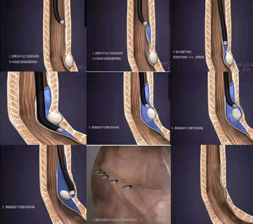 STER技術(shù)中文全稱為“內(nèi)鏡經(jīng)黏膜下隧道腫瘤切除術(shù)”,是治療胃或食管黏膜下腫物的特色技術(shù)。STER技術(shù)可簡(jiǎn)單概括為“打隧道,挖土豆”。通過在病變口側(cè)端3-5厘米處切開黏膜,應(yīng)用內(nèi)鏡粘膜下剝離術(shù)(ESD)分離黏膜下層并建立黏膜下隧道直達(dá)腫瘤,充分暴露腫瘤后,在內(nèi)鏡直視下將腫瘤完整切除,然后經(jīng)由隧道取出腫瘤,最后關(guān)閉隧道入口。要在3.5㎜厚的食管管壁上打“隧道”,取出大腫瘤,受限于黏膜下隧道的狹小空間,操作難度大,要求內(nèi)鏡手術(shù)醫(yī)師要有精湛的內(nèi)鏡技術(shù)。STER既能完整切除腫瘤,又能保持消化道的完整性,降低了術(shù)后消化道瘺的出現(xiàn)和胸腹腔繼發(fā)感染的概率,治療效果明顯,同時(shí)具有安全、微創(chuàng)、恢復(fù)快、并發(fā)癥少等優(yōu)點(diǎn)。我科這一新技術(shù)的開展,充分證明了我院消化內(nèi)鏡領(lǐng)域整體微創(chuàng)治療的水平和實(shí)力再上一個(gè)新臺(tái)階!