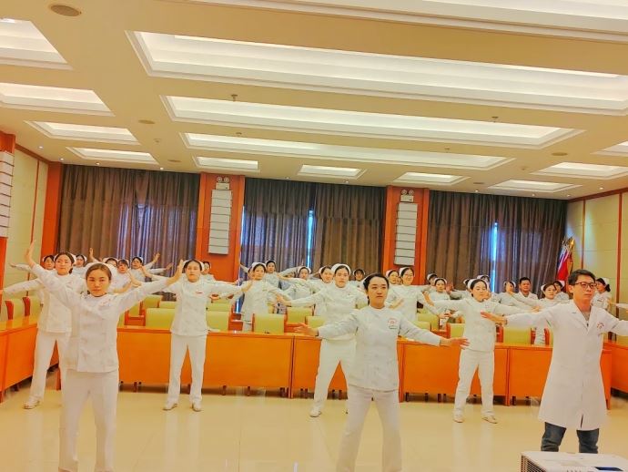 “寓國粹于行,悟古法于心”交流會在傳統(tǒng)健身功法“八段錦”練習(xí)中拉開帷幕,與會人員在皮膚科副護(hù)士長黃帥的帶領(lǐng)下,躬身感受古法文化的魅力。八段錦發(fā)源于兩宋時期,以其獨特的方式調(diào)和人體陰陽平衡,疏通全身經(jīng)絡(luò)。讓我們在繁忙的生活中減輕壓力,舒緩身心,從而更好地掌控自己的情緒。