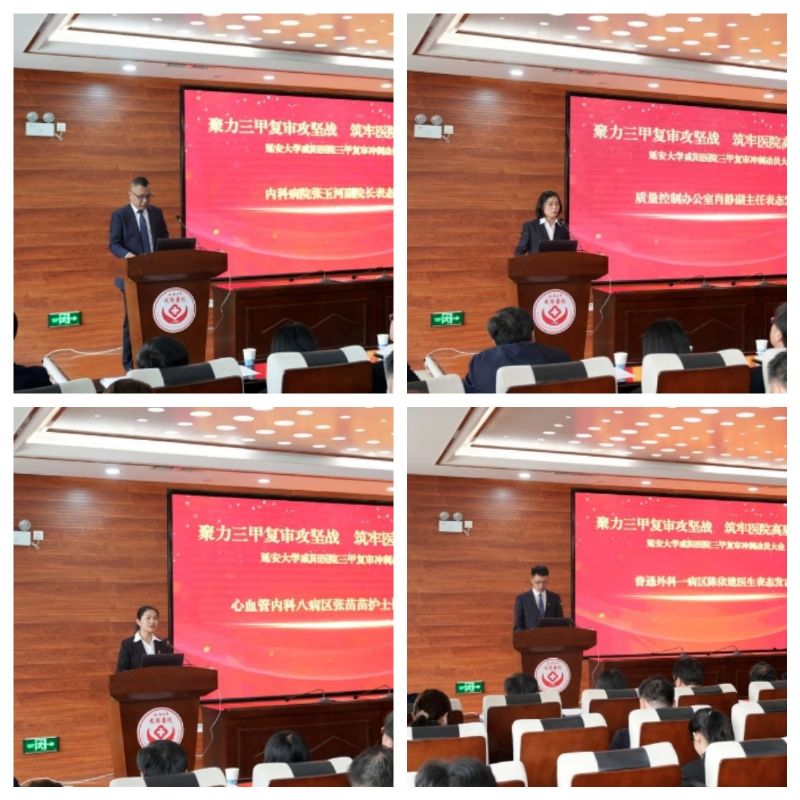 2025年4月1日15時(shí),延安大學(xué)咸陽(yáng)醫(yī)院在外科病院二樓會(huì)議室隆重召開(kāi)了三甲復(fù)審沖刺動(dòng)員大會(huì)。此次會(huì)議意義非凡,精誠(chéng)醫(yī)療集團(tuán)領(lǐng)導(dǎo)、醫(yī)院領(lǐng)導(dǎo)班子全體成員、全體中層干部齊聚一堂,同時(shí),其余職工通過(guò)線上平臺(tái)積極參與,共同為決戰(zhàn)決勝三甲復(fù)審吹響了沖鋒號(hào)角。